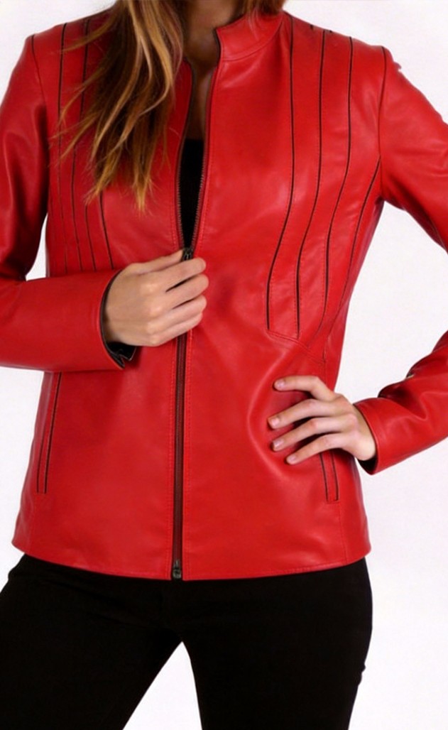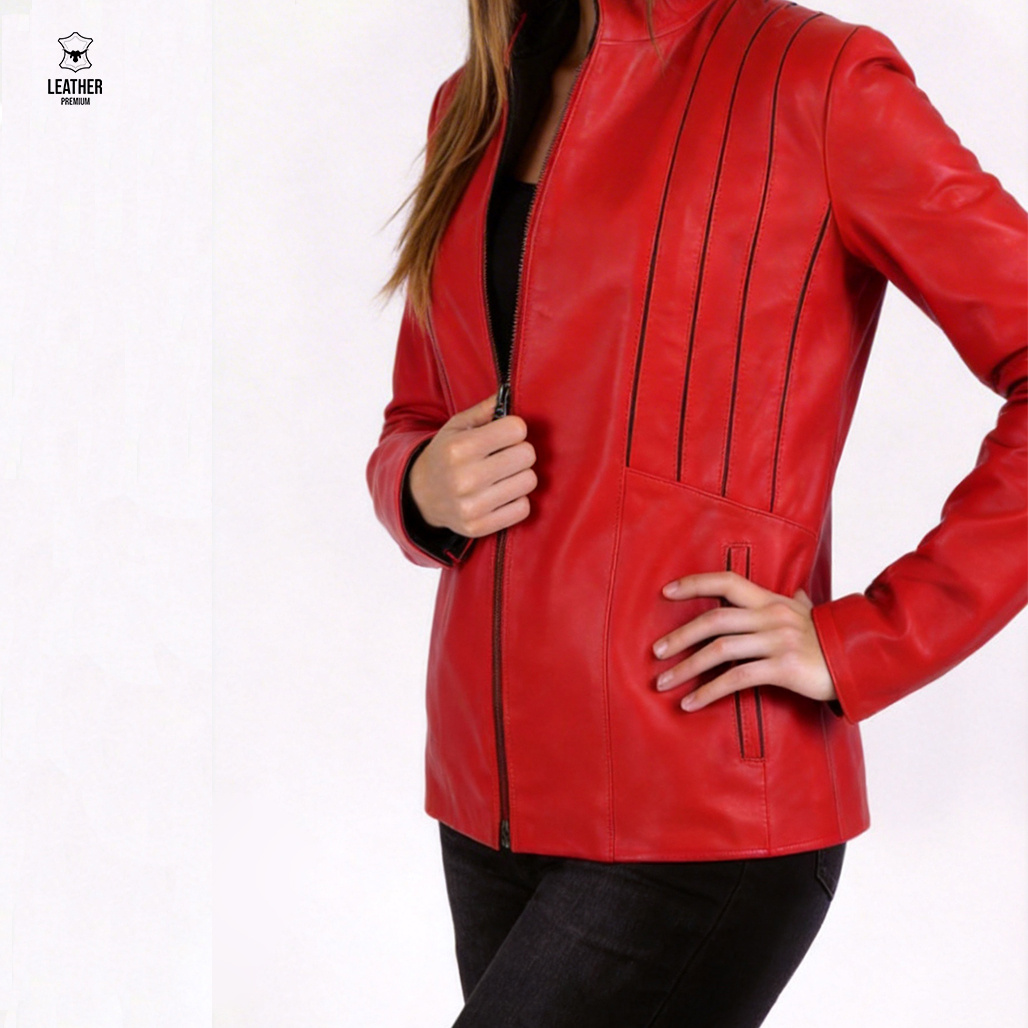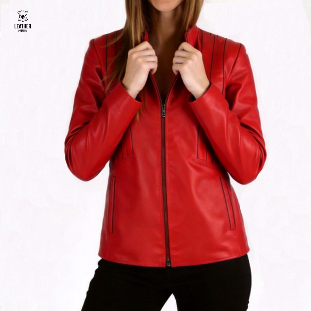 Veste en cuir rouge pour Femme -candy-